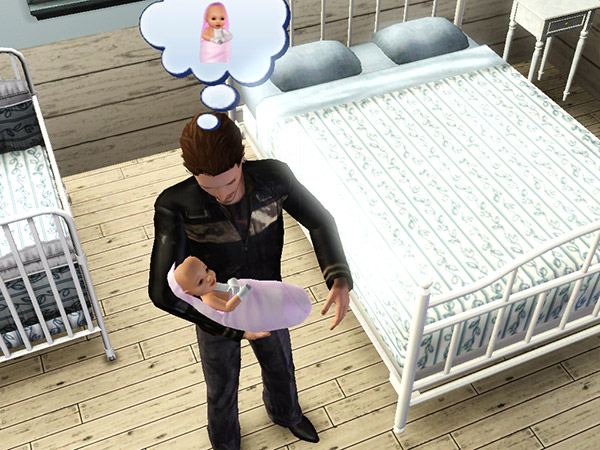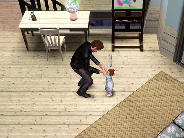 バカップルプレイに飽きたので、マスコンの「インスタントベビー」というシュールな機能でどこからともなく子供を授かったミシェルとリン。性別も選べたので無事に原作どおり女の子が生まれました。名前はマノンちゃん。全体的に年を取らないプレイなので、もしかしたら一生乳幼児なのだろうか? 2、3歳くらいがいいんだけどなあ……。
