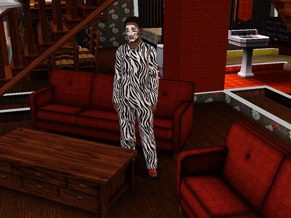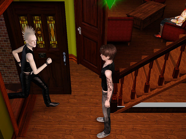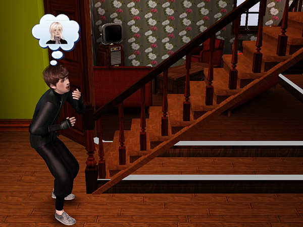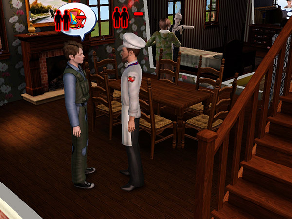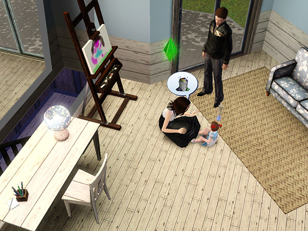 翌朝のレニエ家では、Sims 1の時代に見覚えのある修羅場が……。そしてこのベッドかわいいんだけど一度寝ると表示がなんかバグる。他のに変えようかなあ。