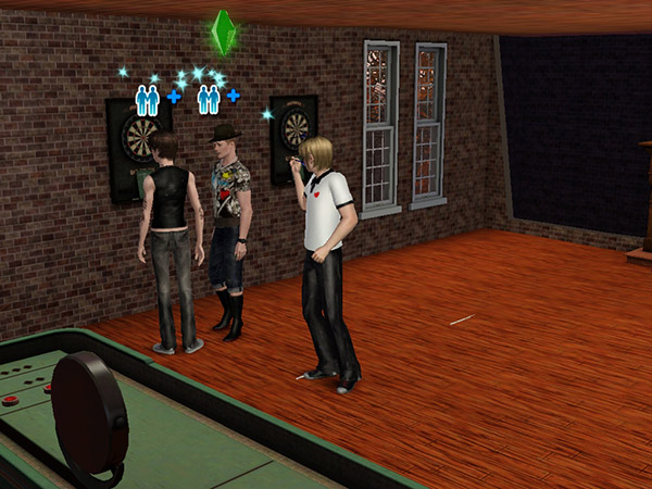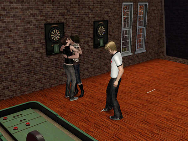 勝手に盛りあがっているカップルを挟んで、冷静にダーツを投げ続けるリュドミル!