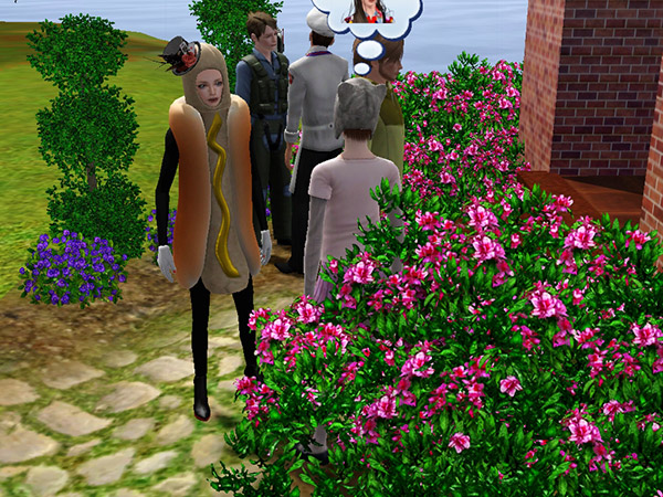 ステファンの願望に「仮装パーティーをしたい」というのが出ていたので、まだ家の内装が完成してないけれど、開いてみました。この家族、誰も料理できないので、料理は来客が持ってくるものをあてにする。しかし持ってくる人とこない人がいるんだね。