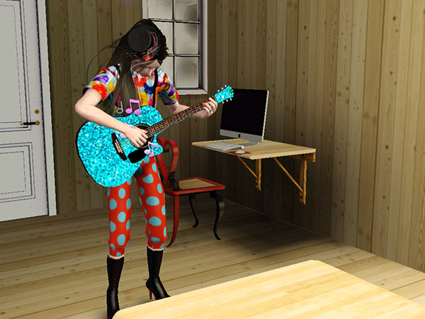 ユーザーメイド品のかわいいギターを買ってみた。が、購入→設置はできるのだが、弾きはじめると透明化してエアギター状態に! 拡張パックが足りないのだろうか。