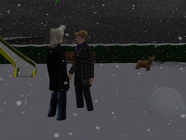 雪の降る中、オメガを連れてさらに昨日とは別の公園に散歩に行くと、折よくフランツに出会った。まだ知り合っていないので、とりあえず自己紹介から。フランツは医者志望で近所の聖ベアトリクス病院に勤めているらしかった。