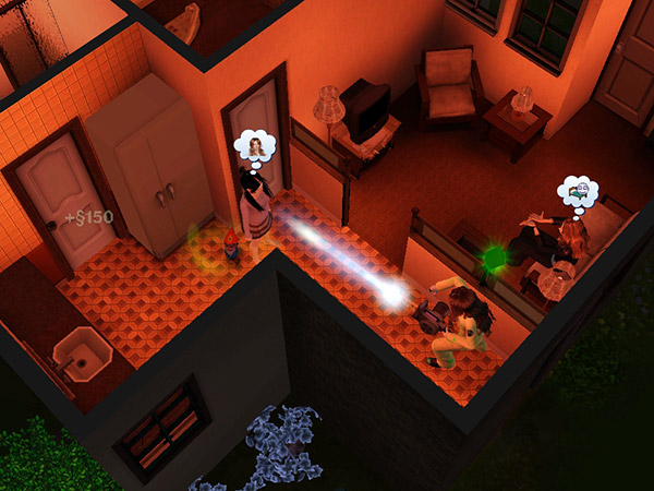 家の中に入ると、家具がガタガタと大暴れ。とはいえ浮遊している霊と同様の要領で、サクサク除霊していく。と……妙に、霊ではなく人間の視線を感じる。