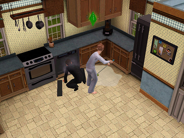 ちょうどその時、食事を終えた二人は皿を洗おうとしていたが、食器洗浄機が壊れてキッチンが水浸しに。