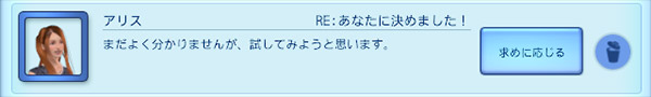 なんか露骨に適当な感じだが、まあそこは、お互い様である。「求めに応じ」てみると、アリスと「知人」になった。デートはオフラインでやれということか。