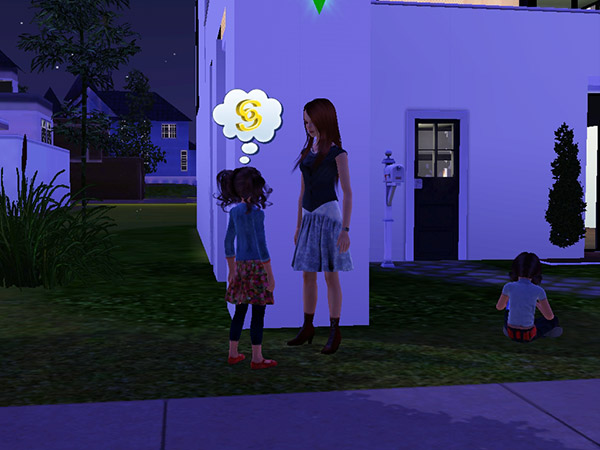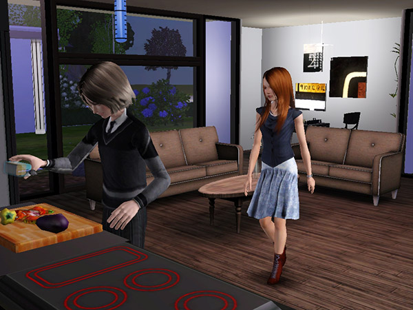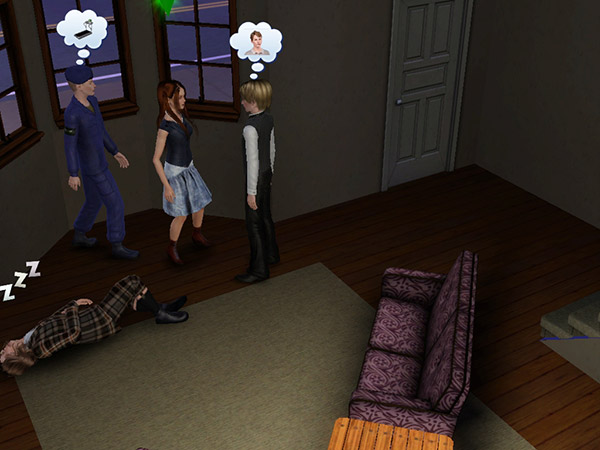 中に入ると、サヤカちゃんも来ていて、居間で気絶(のフリ)をしていた。フランツとアリョーシャも最初は驚いていたが、そのうちスルー。嘘と気付いたのかどうか定かではないが、基本的にドライなのがSimの世界である。