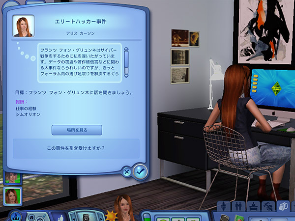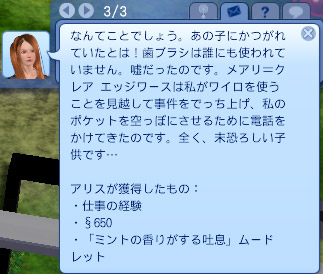 ようやくワールド移動とCC再インストールが一段落。まだ厳密にチェックしていない世帯もあるけれど、まあ細かいことはいいのだ。そんなわけで、話は探偵アリス・カーソンに戻る。