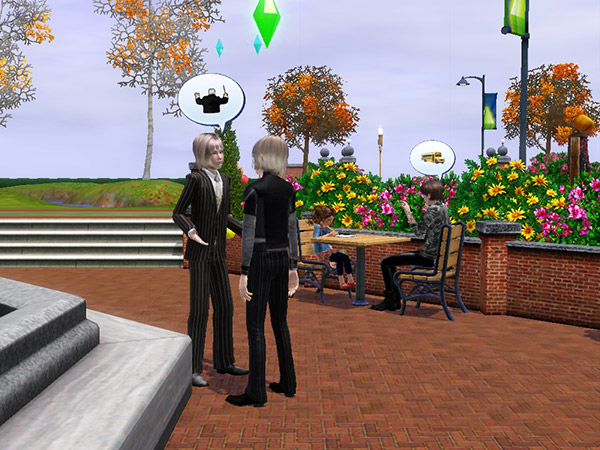 休日に公園で上司との交流を試みるセイ。こうしてみると意外にもセイよりユーリーの方が背が高いのだ。某学院の子は皆やたらと高身長だなあ。しかし、燦々と降り注ぐ陽射しのせいで、超高速で帰られてしまった……。