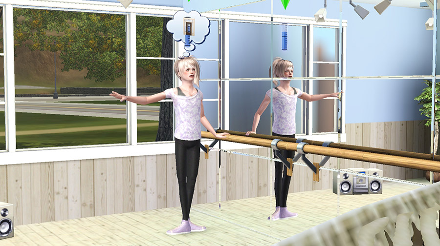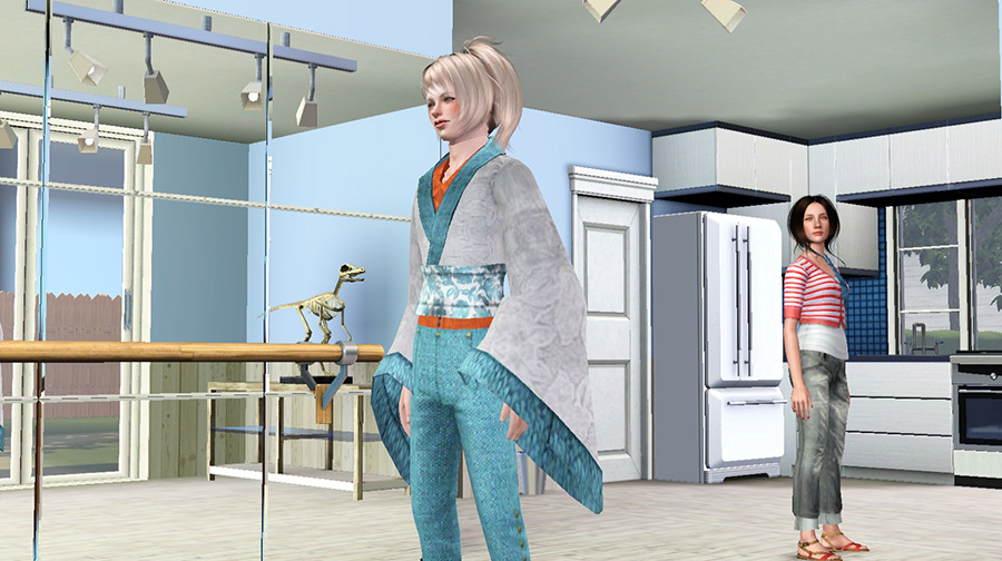 ストア品のバレエバー&ダンスフロアのセットがいつの間にか単品売りされており、しかもちょうどセールになっていたので早速購入し、念願の実際に踊れる自宅レッスン室を設置。マリアの趣味で恐竜の模型なども置かれている。