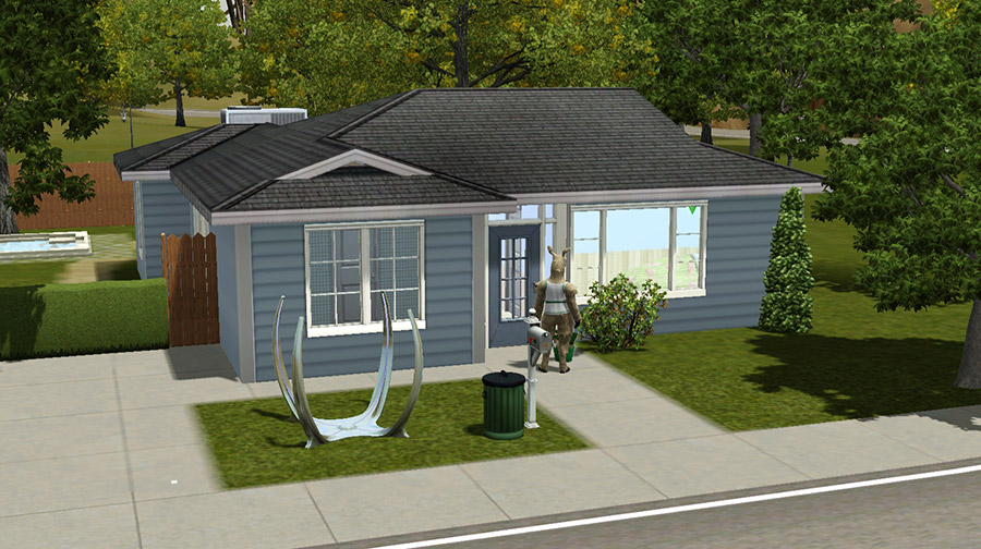 なんと……最近導入したITFのタイムポータルが、景観完全無視で家の前に。これって個人住宅に発生するんだっけ? 通常セーブで旅行系は行う予定がないので、ウェザーストーンと並び迷惑なだけの存在である。迷惑ついでにULの大学マスコットもやってきた。意外にもタイムポータルは売却可能だったが、また出現しそうな気もしたので、とりあえず家の裏なら目立たないかと庭に突っ込んでおいた。