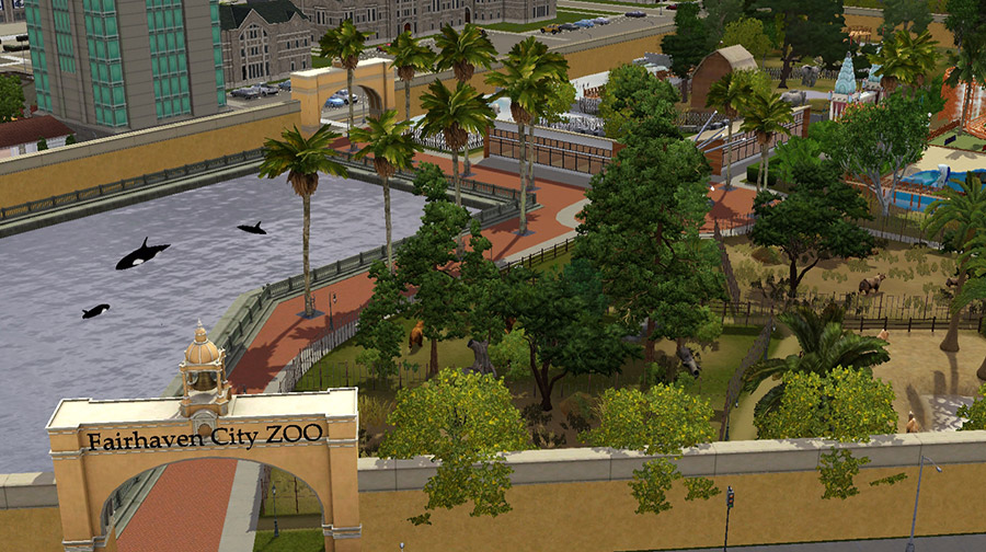 町の中心に動物園があるのが特徴。動物も装飾オブジェクトなため、動かないのは残念だが、撮影会に使えば楽しそう。