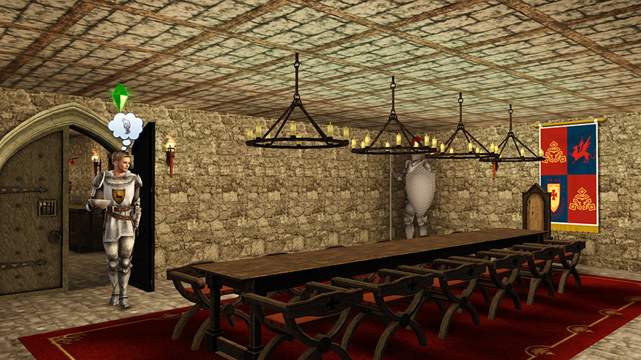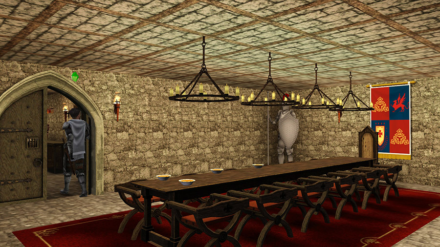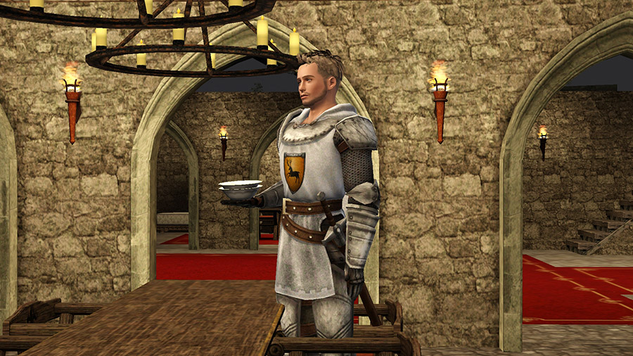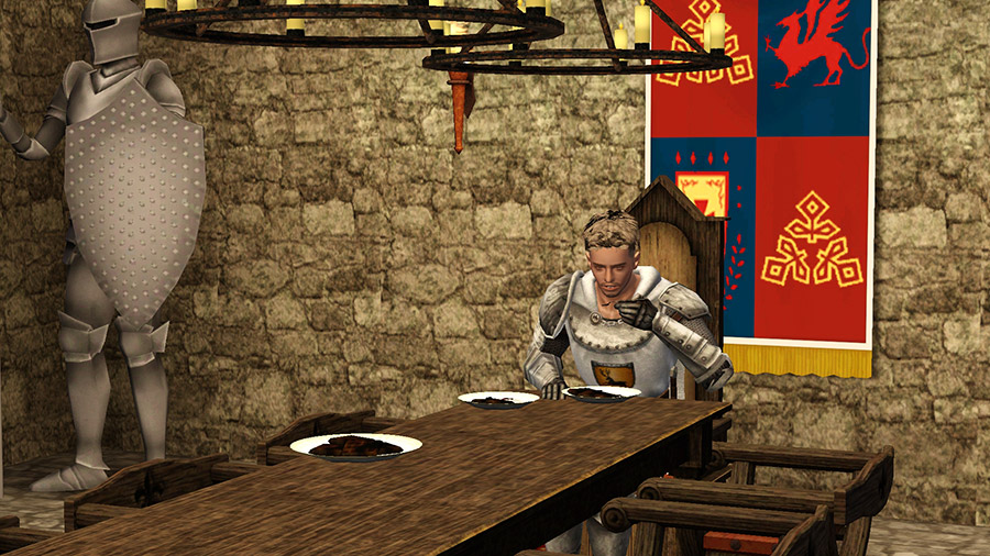 騎士のライナーシュがぽつんと一人、ダイニングで食事。