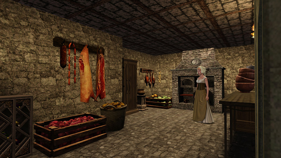 お城では、メイドさんも中世風。