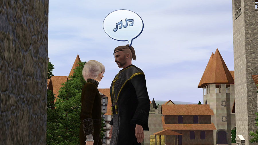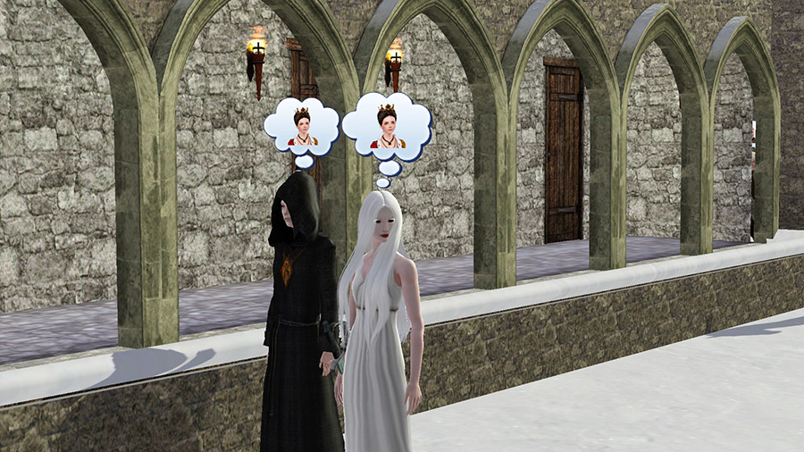 城の住民とは原作で敵対勢力であるこの二人、ゲーム内でも「敵」同士で仲は最悪なのだが、試しに招待してみたところ、普通にやって来た。もしかするとパーティー人数制限解除MODの影響などあるかもしれないが。