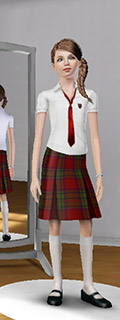 シエルはパステルカラーのアジア寄り無国籍ファッションという、私のふだんの選択からかけはなれた趣味(パステルカラー扱うの苦手でつい濃い配色にしたくなる……)なので、民族衣装系など探してみたが、このミニ丈着物が一番似合うんだー。が、これ、本来女子用のワンピースなため、同時にボトムスは着られないのである。左と中央はフラグを改竄して無理やりトップス扱いにしてみたが、たまにスカートの柄が着物の上に表示されちゃうのでやめた。右は元のワンピース+靴下としてレギンスを装備している。逆に着物はワンピースのままで、左のボトムス(実はギムナの制服と同じ)を靴下にしてみたら使えるかな? 一度試そうかな。