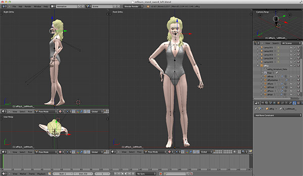 Blender基本操作の解説サイト&ポーズ作成チュートリアルサイトと首っ引きで、シンプルな立ちポーズを作ってみたが、
