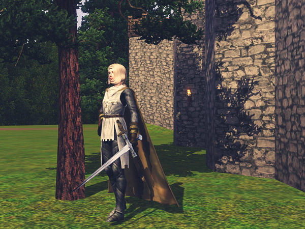 ところで、腕に付けられるアクセサリ剣が右手用しか見つからない。写真は、Luna Simsさんところでもらってきたオブジェクトの剣をTipsy OMSPで角度をつけて配置しているが、手にくっついていないので、Simを動かす度に剣も調整して移動しなければならない。