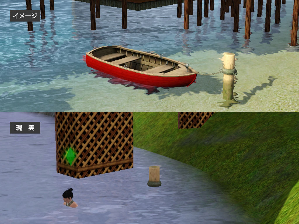 なんと、先ほどの池の中の岩場がNPC発生ポイントになってしまっており、すべてのNPCがここから泳いで町へ向かっているようなのだ。