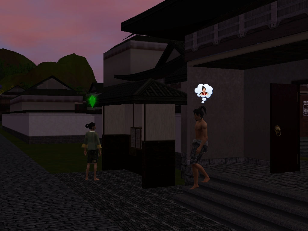 さて、町の南端には、大きな池に面した屋敷があったが、ふとした思いつきで、これをアパート形式に改造してみた。家族の生活する部屋以外を共有スペースにすれば、行き来するNPCを屋敷の使用人っぽく演出できるかなと思ったのだ。