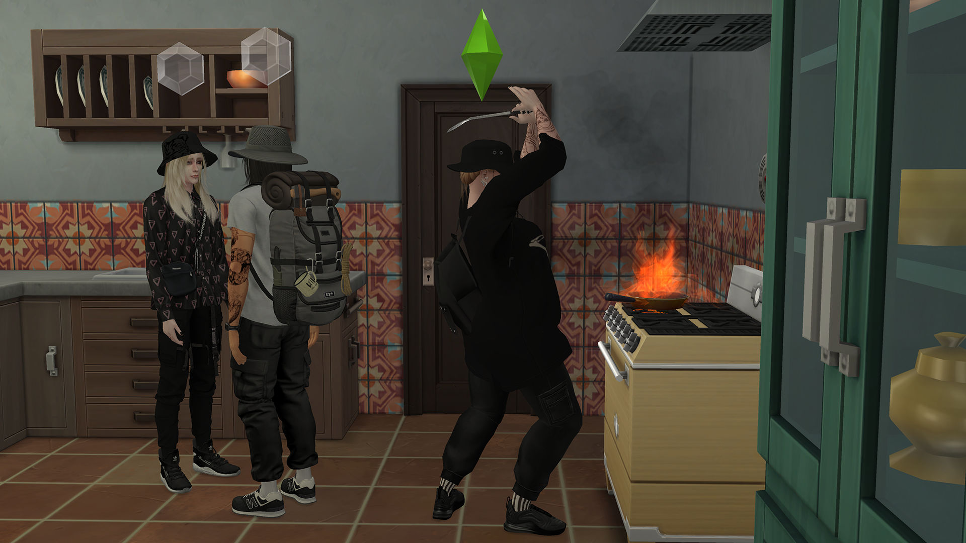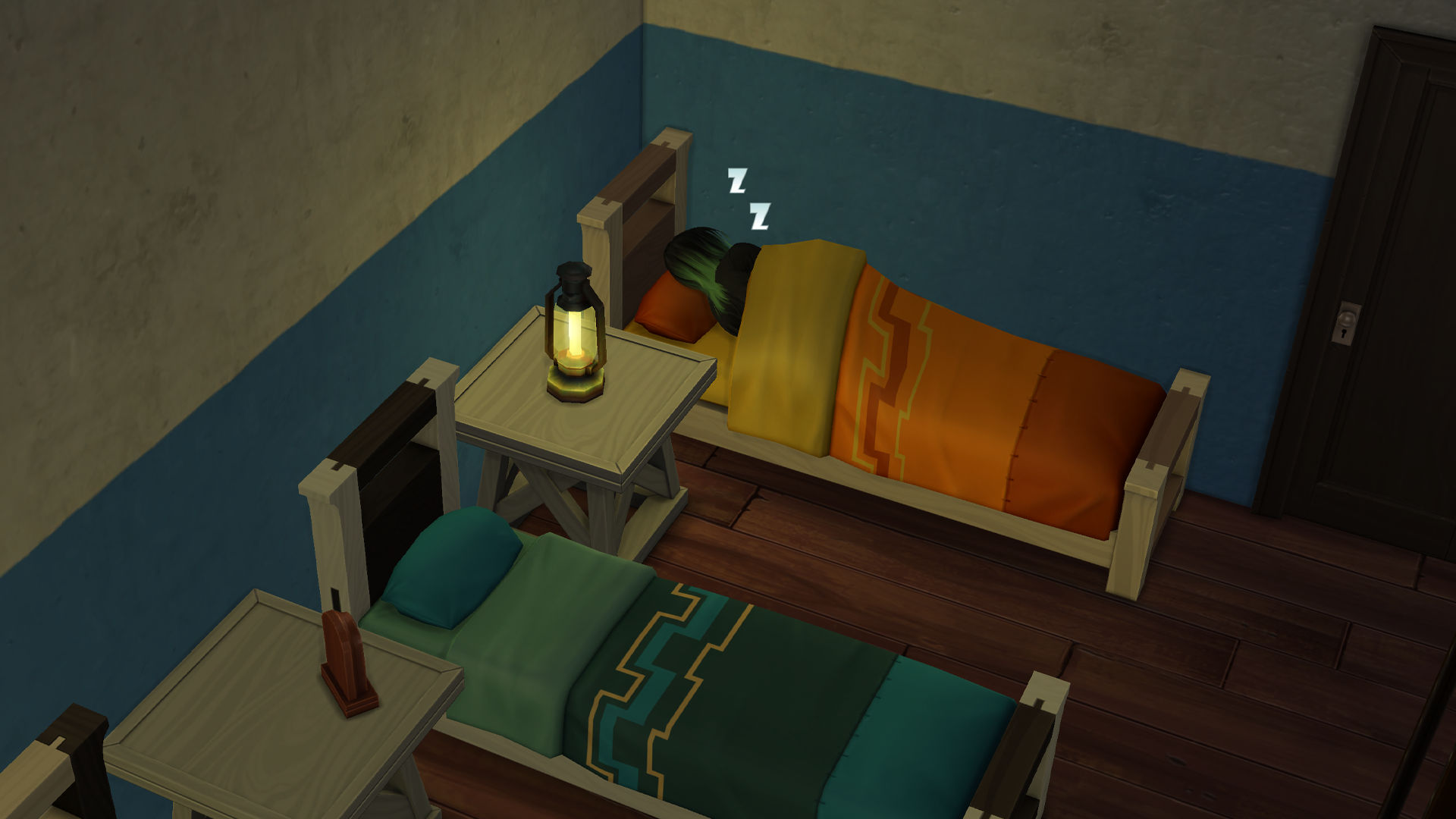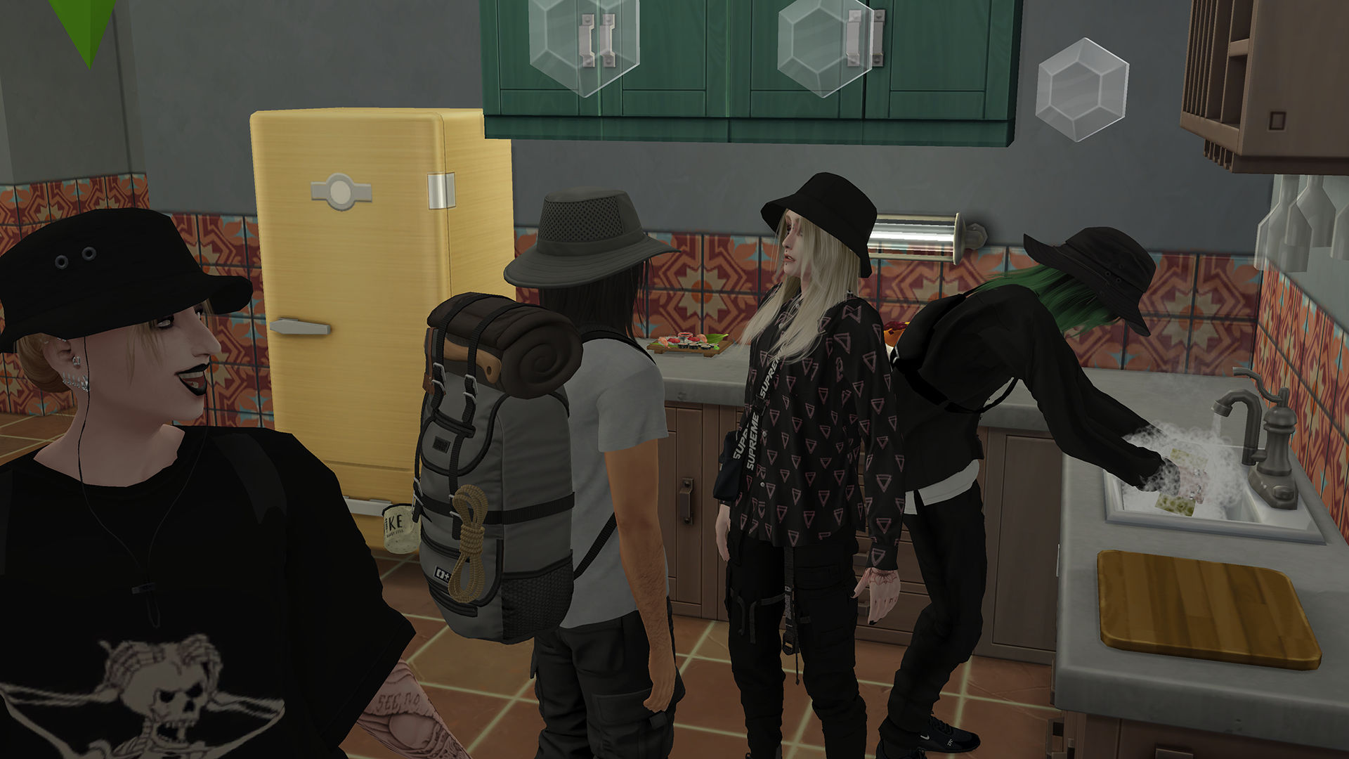 Simsあるあるだが、今回は旅先でパーティー機能が使えず全5人なので、分散されるとちょっと見た目が寂しい……。