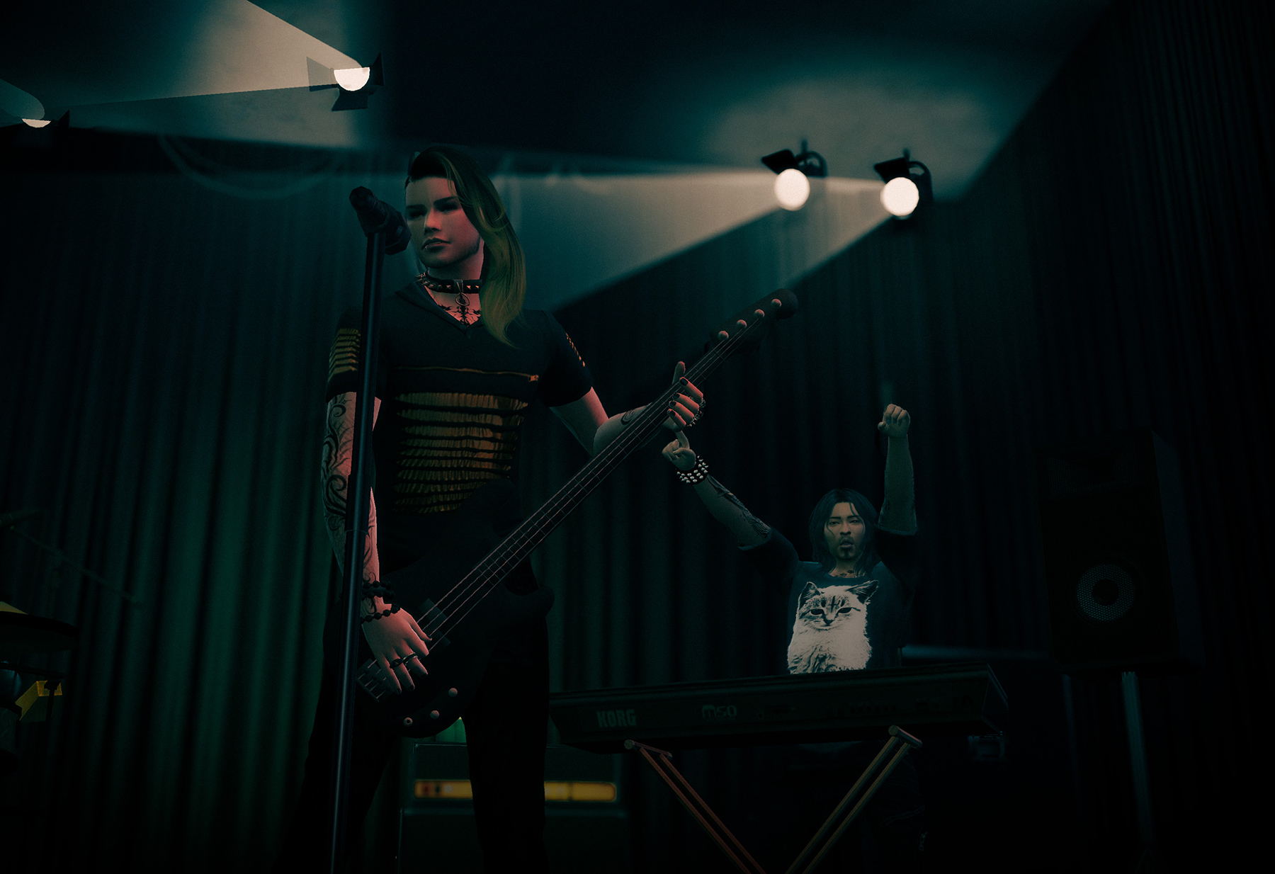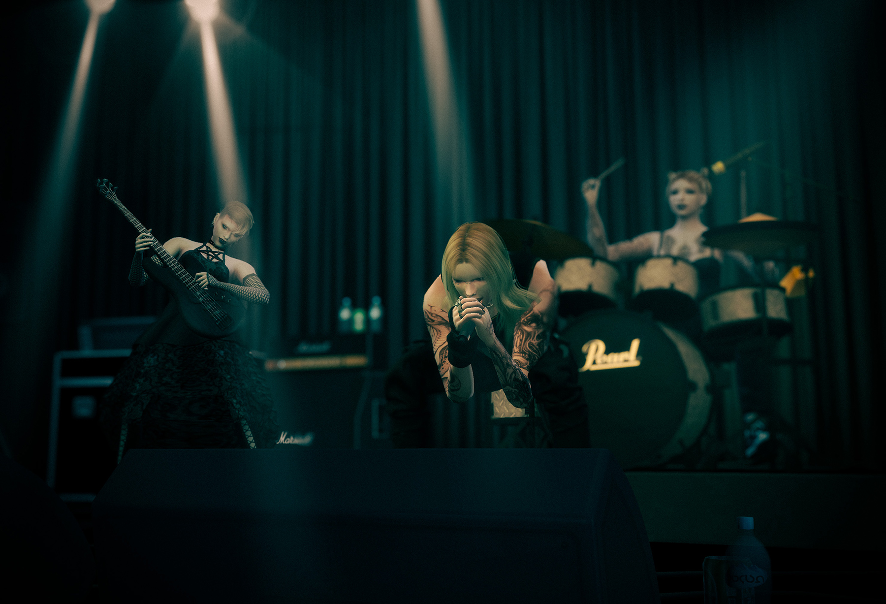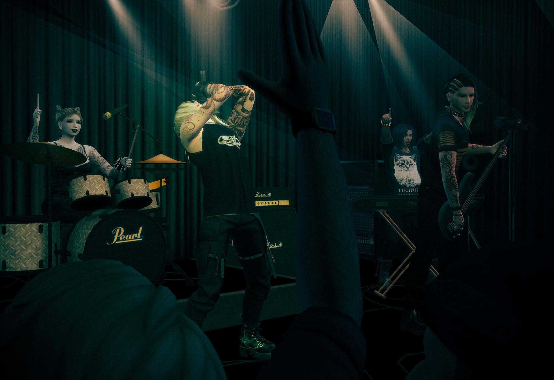 撮り終えてから諸々ミスに気付いたものの、そのままです。ギターポーズが途中でレフティになってたり、ギターとベースの立ち位置が逆な気がしたり(私の好きなプロバンドはギター下手側が多いので無意識に配置してしまった)、一番美人のボーカルの顔があまり見えなかったり……。