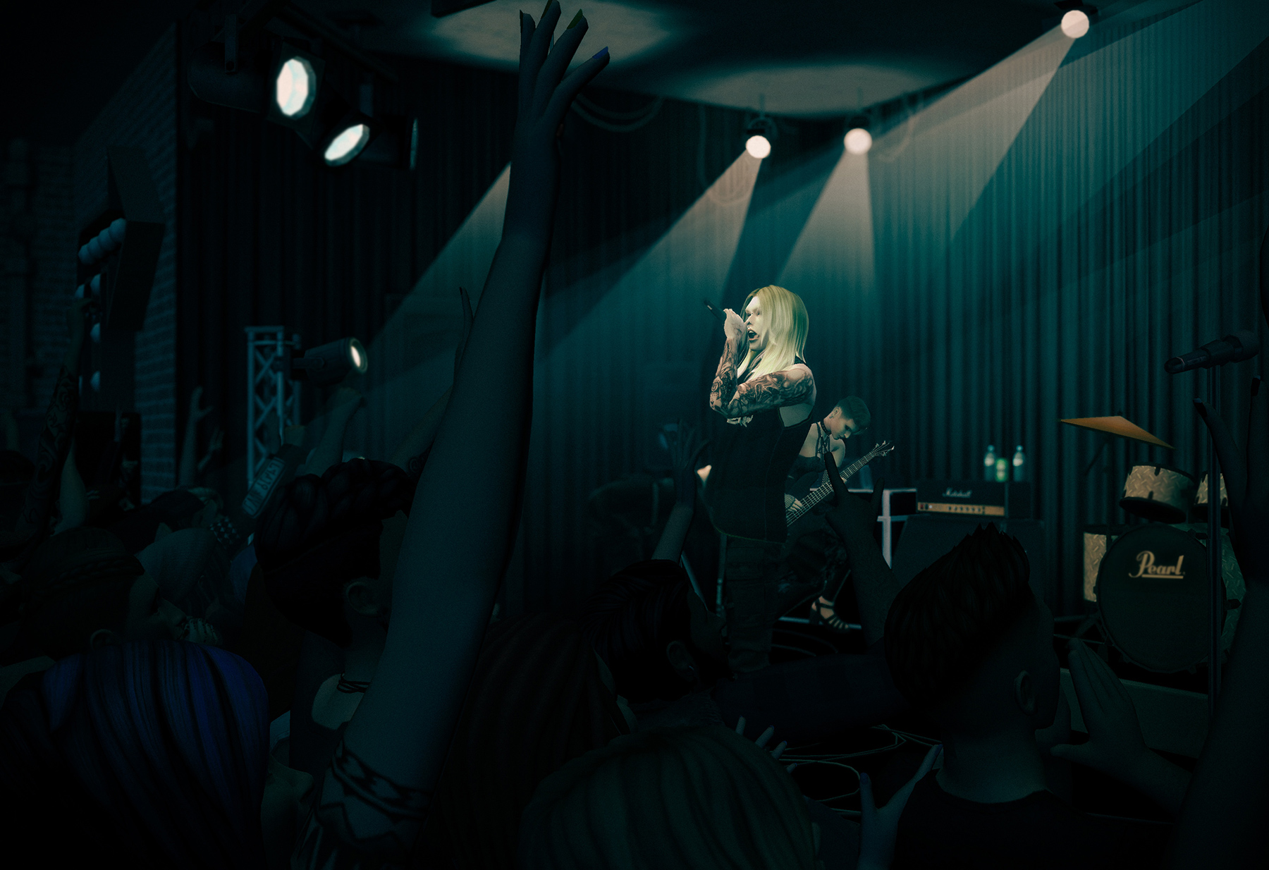 観客(デコシム)のおかげで臨場感がある。メロイックサインの人とか居た気がするのでセンターに配置すればよかった。